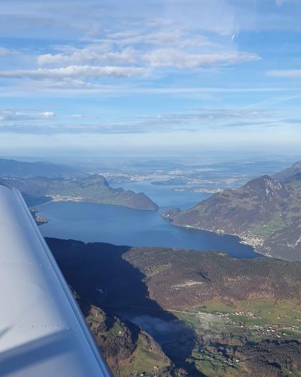 - Après envion 1h15 de vol, notre Robin HB-KFB et le lac de Zurich en arrière plan.